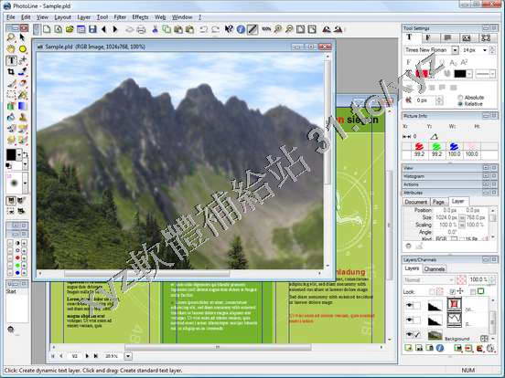 具有專業水準的圖形處理軟體,Photo Line支援Layer,並且也內建許多現成的濾鏡和