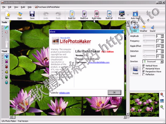 LifePhotoMaker可以通過給數碼照片添加水波、天氣及聲音特效讓照片展示活靈活現,借助友好