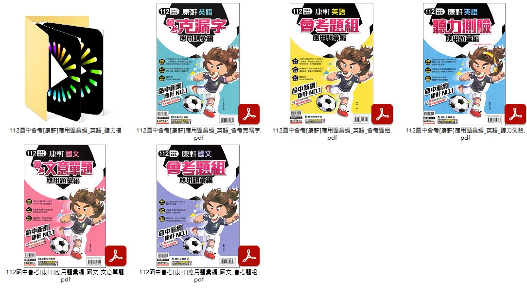 112年國中會考 [康軒]應用題彙編(英語聽力測驗、英語會考題組、英語會考克漏字、國文文意單題、國文會考題組) 總複習 卷類光碟