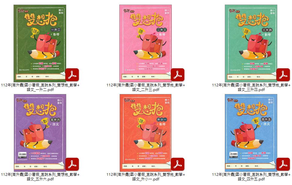 ![]() 112年[高升鑫]國小暑假_直說系列_雙想抱_數學+語文