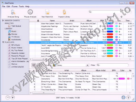 元件。該軟體可以分析 BPM(每分鐘的節拍),歌曲開頭和結尾靜音以及彩色(根據音頻光譜)