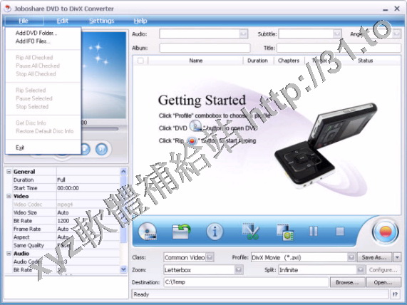 Joboshare DVD to DivX Converter可以幫助您將各種格式的DVD視頻光碟轉換為MPEG-4、